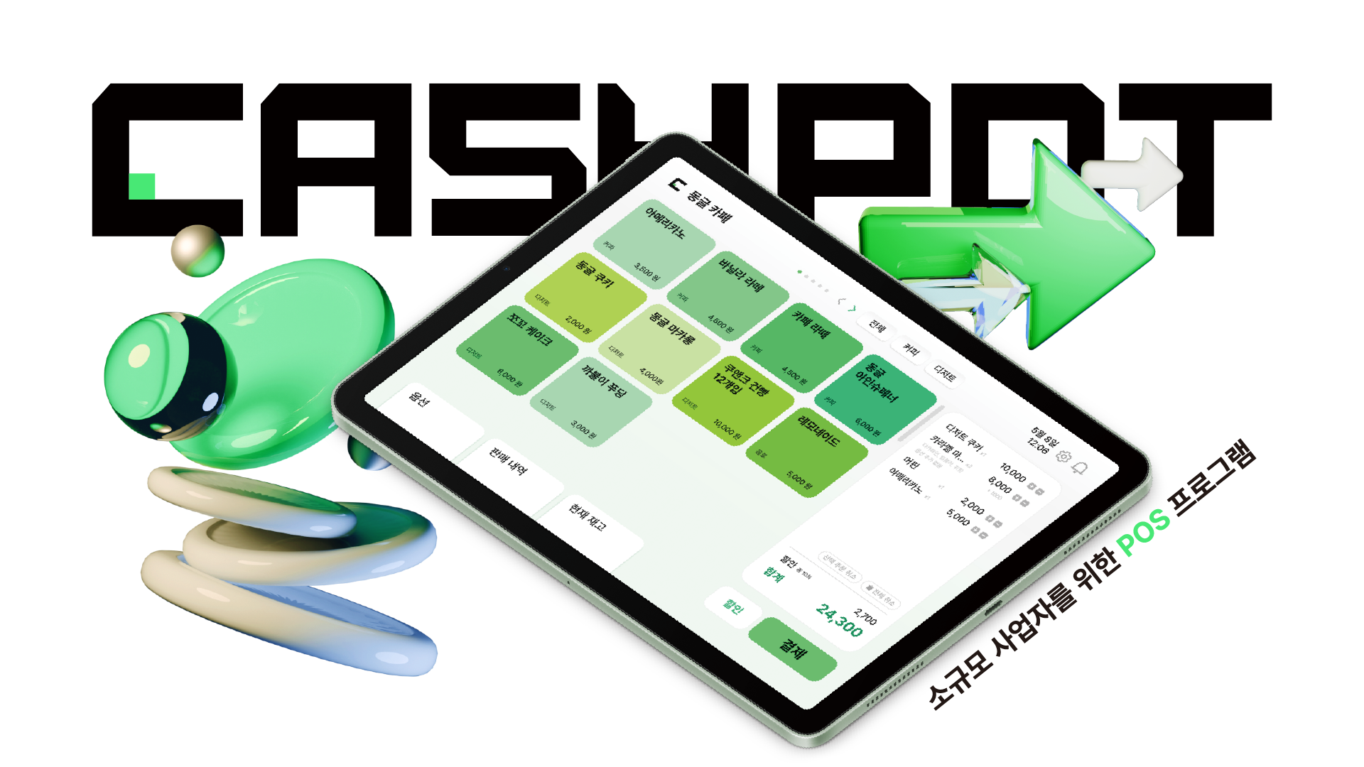 오프라인 단기매장 운영과 소규모 사업자를 위한 POS 프로그램 'CASHPOT'은 기존 포스 프로그램의 단점을 보완하고, 사장과 직원 관계없이 누구나 쉽게 다룰 수 있도록 편리함을 추구하고자 탄생했다. 실제로 다양한 POS 프로그램을 사용하고 관찰하며 느낀 단점은 많은 정보량이 정리되지 않았다는 점, 모바일로 이동시 작은 화면에서 사용성이 매우 떨어진다는 점, 대규모 사업자에게 최적화 되어있다는 점이었다. 따라서 복잡할 수 있는 결제, 환불, 재고 정보는 한눈에 볼 수 있게 정리하고, 소규모 사업자 특성상 여러개의 단기매장에 참여하는 케이스가 많다는 점에 집중하여 서비스를 설계했다. 또, 바쁜 매장에서 작은 화면으로도 쉽게 사용할 수 있도록, 모바일 기기에 최적화된 어플리케이션을 설계했다.