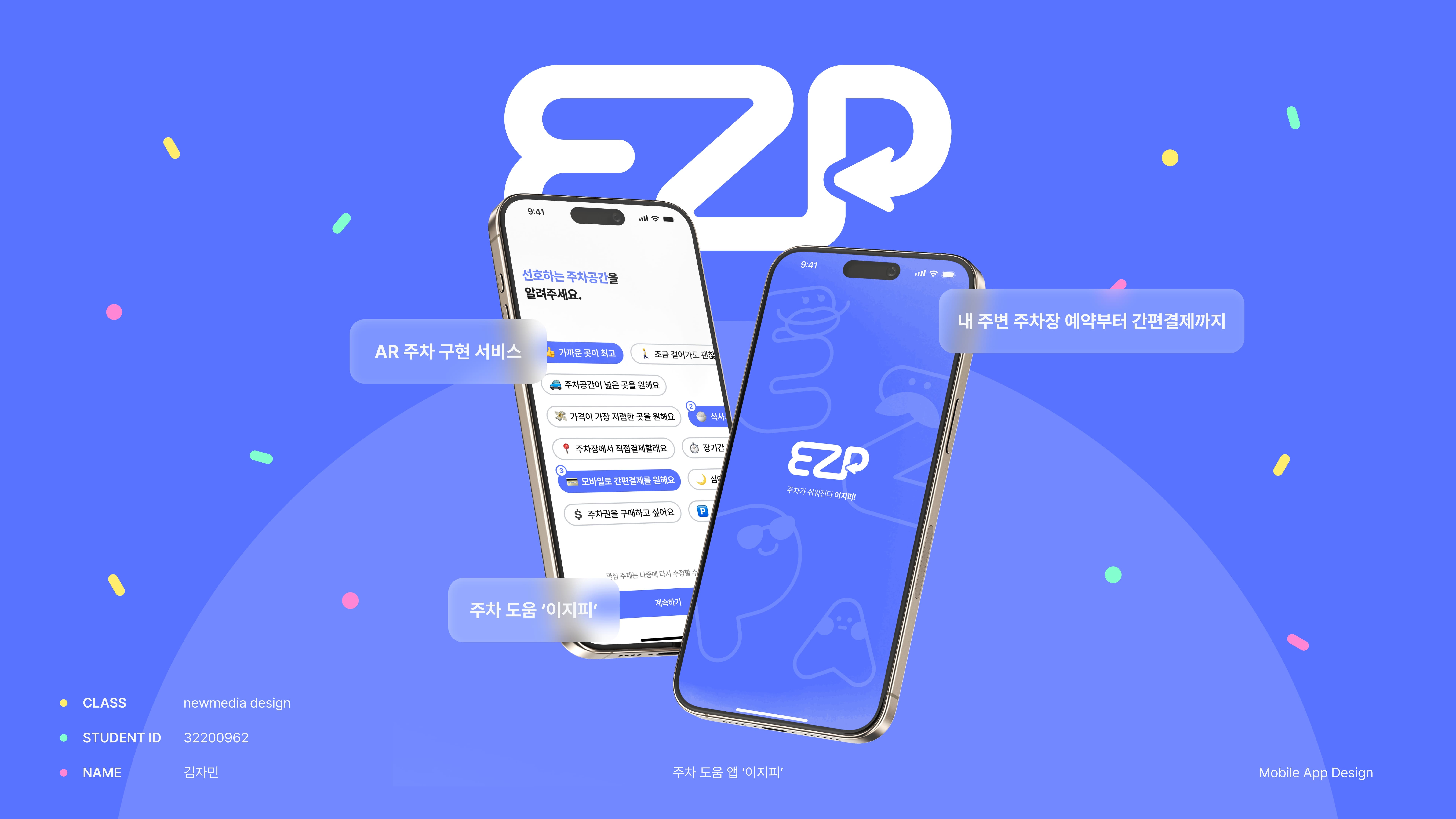 주차 전쟁시대 운전자의 주차 고민을 해결해 주다. 수도권 지역에 거주하다 보면 주차할 장소도 마땅히 없고 공간도 좁아 주차하기 힘든 경험이 있을 것이다. 또한 주차 경험이 부족한 초보 운전자들은 조수석에서 코칭 해주는 사람이 없다면 혼자서 주차하는 데 진땀을 뺄 것이다. 이지피는 이러한 유저들의 어려움을 개선하고 도움을 주고자 개발하였다. AR로 차량에 맞는 다양한 주차 방식을 구현하고, AI로 거리와 각도에 맞는 주차 방식, 유의 사항을 음성으로 안내한다. 또한 주차장 빈자리를 실시간으로 확인하고 예약할 수 있으며 유료 주차장 요금 정보 확인부터 핸드폰 결제까지 가능하도록 기획하였다.