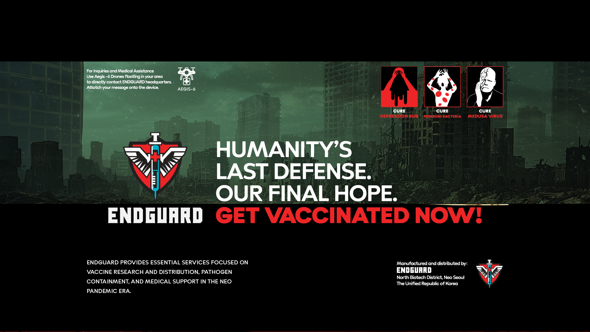 2050년 발생한 '네오 팬데믹'에 의해 3가지의 고대 병원체가 세상에 전파되면서 멸망 직전까지 간 인류는 병원체가 추위에 약한 점을 이용해 늘 온도를 낮게 유지할 수 있는 초거대 돔을 제작하고. 그 돔 안에서 네오시티를 건설해 살기 시작한다. 네오시티중 하나인 네오서울에서 저명한 과학자들에 의해 설립된 제약 브랜드 및 구호단체 ENDGUARD는 끊임없는 연구 끝에 마침내 병원체를 박멸할 수 있는 백신과 항생제 등의 의약품을 개발하는 데 성공한다. ENDGUARD는 전 세계에 퍼져있는 생존자들을 가이드북을 통해 네오시티로 올 수 있도록 유도하고, 백신과 약을 보급해 인류의 생존력을 높여 세계의 재건을 목표로 운영된다.