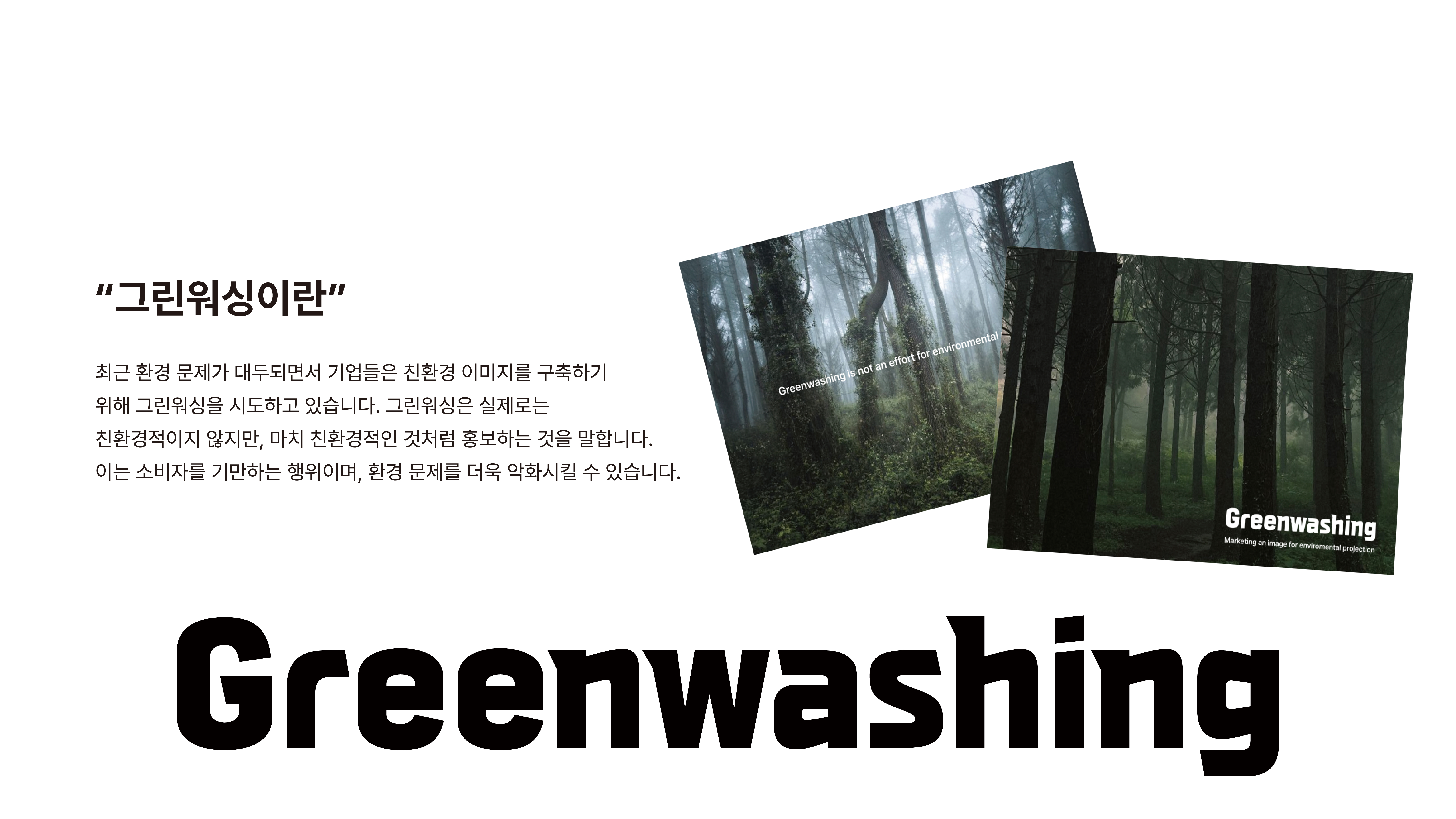 최근 환경 문제가 대두되면서 기업들은 친환경 이미지를 구축하기 위해 그린워싱을 시도하고 있다. 이는 실제로는 친환경적이지 않지만 마치 친환경적인 것처럼 홍보하는 것으로 소비자를 기만하고 환경 문제를 악화시킨다. 포스터에서는 그린워싱의 W를 사나운 야수의 이빨로 표현해 문제점을 강조했다. 이 야수는 우리의 미래를 위협하는 존재로 그린워싱이 우리의 미래를 위협할 수 있다는 것을 상징한다. 현재 많은 기업들이 그린워싱을 시도하고 있으며, 이는 소비자들의 신뢰를 떨어뜨리고 환경 문제를 악화시키는 원인이 되고 있다. 이번 작품을 통해 그린워싱의 문제점을 알리고 소비자들의 인식을 개선하고자 하며, 우리 모두가 함께 노력하여 환경 문제를 해결하고 지속 가능한 미래를 만들어 나가야 한다.