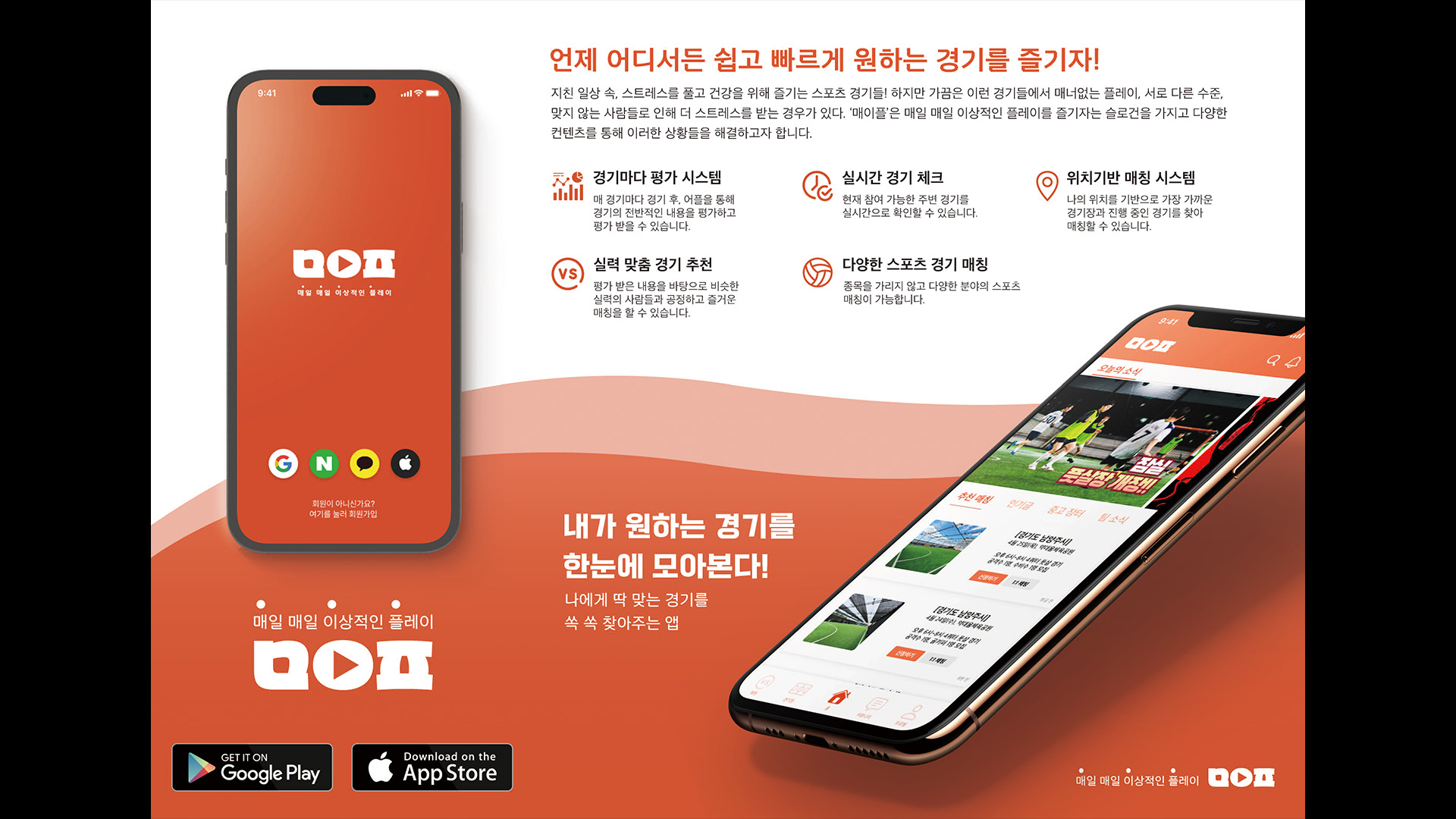 바쁜 일상 속에서 일정이 맞는 운동 파트너를 찾기 위해 많은 이들이 스포츠 매칭 플랫폼을 이용한다. '매이플'은 이상적인 스포츠 매칭 플랫폼을 추구한다. 축구, 테니스, 농구, 배드민턴 등 다양한 스포츠에서 레벨, 위치, 스케줄에 맞는 파트너를 손쉽게 매칭할 수 있다. 빅데이터를 통해 비슷한 실력 대 스마트 매칭 시스템과 gps를 기반으로 실시간 매칭 기능을 통해 원하는 시간에 바로 참여할 수 있으며, 리뷰와 평점 시스템을 통해 신뢰도 높은 파트너를 선택할 수 있다. 앱을 통해 매일 매일 이상적인 스포츠 플레이를 즐겨보자.