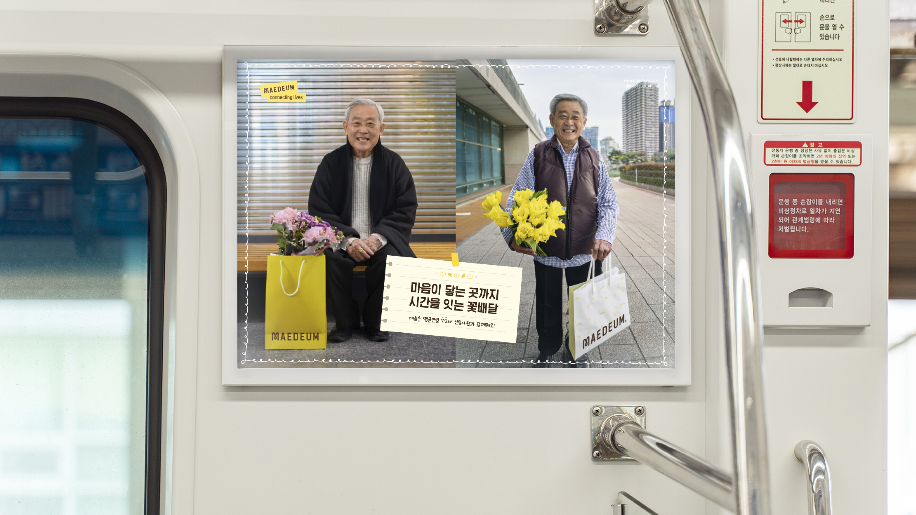 가치 추구의 패러다임을 바탕으로 DEI(다양성, 형평성, 포용성)를 경쟁력으로 삼고 있는 'MAEDEUM'은 특히 시니어 일자리에 집중한다. 'MAEDEUM'는 기존 시니어 배달일자리와 달리 단순한 일자리 창출에 그치지 않는다. 배달의 기능을 넘어 브랜드의 가치를 전면에 내세워 소비자와 적극적인 커뮤니티를 형성하고, 새로운 가치 소비를 제안한다. 더 나아가 시니어와 소비자 간 직접 소통을 통해 '조화로움'의 가치를 더하고, 소비를 통해 얻는 확장된 경험을 제공한다. '세대 간 조화'라는 브랜드 비전을 직접적으로 드러내고자 손을 맞잡는 모습에서 확장된 키비주얼을 통해 재치있고 활기찬 시니어의 이미지로 인식될 수 있도록 개발되었다.