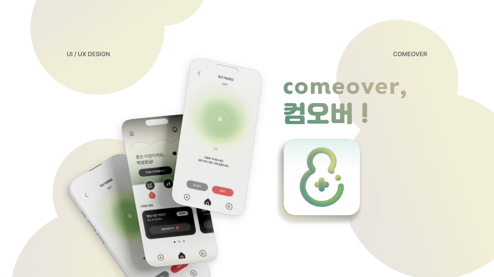 [ comeover ] to [ overcome ] your fear! 두려움은 누구에게나 있는 기본적인 감정이다. 하지만 이것이 일상을 마비시킬 정도로 커진다면, 그것은 더 이상 혼자서 감당할 수 없는 불안장애, 공포증이 된다. 현대를 살아가는 많은 사람들은 각자의 공포 속에서 하루하루 불안하고 힘겨워도 그저 외면하거나 버텨낸다. '컴오버'는 이런 이들을 돕는 데에 초점을 맞췄다. 노출 치료를 기반으로 사용자가 최대한 부드럽게 앱을 소화할 수 있게 화면을 구성하였으며, 각자의 속도에 맞추어 천천히 공포심을 핸들링하도록 보조한다. 사용자의 공포증 양상에 따라 명상, 호흡법 연습 등의 세분화된 맞춤 서비스를 제공하고, 더 나아가 실제 병원과 연계하여 더욱 전문적인 도움을 받을 수 있다.