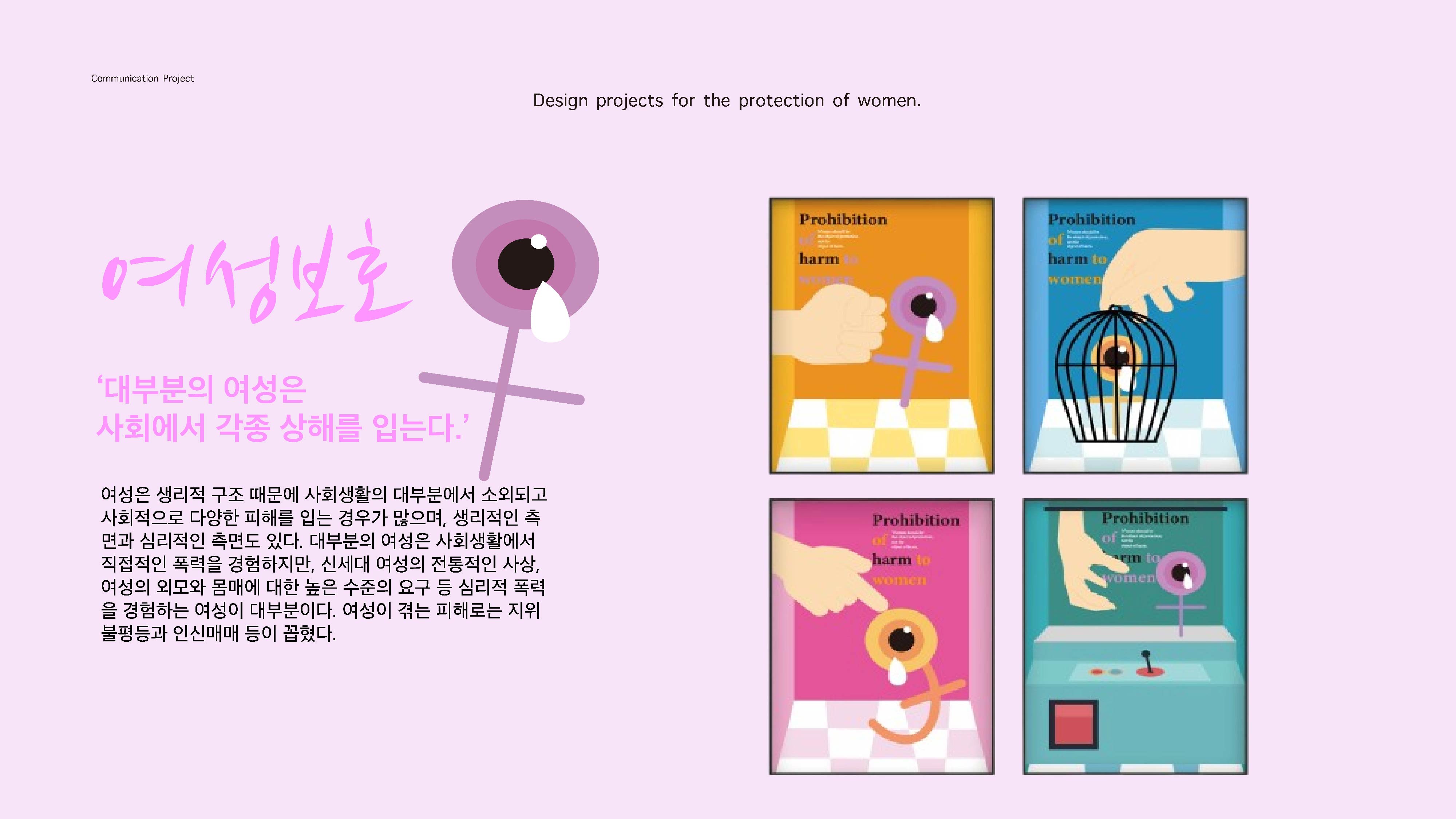 여성은 생리적으로나 심리적으로 취약하기 때문에 사회적으로 불평등과 폭력에 시달린다. 세계보건기구의 새로운 데이터에 따르면 전 세계 여성의 3분의 1이 약 7억 명에 달합니다. 3600만 명이 평생 가까운 파트너로부터 신체적 또는 성폭력, 또는 파트너로부터 성폭력을 경험한다. 현실에서 여성이 받는 피해는 이뿐 아니라 더 많아 여성 보호에 대한 홍보가 필요하다.